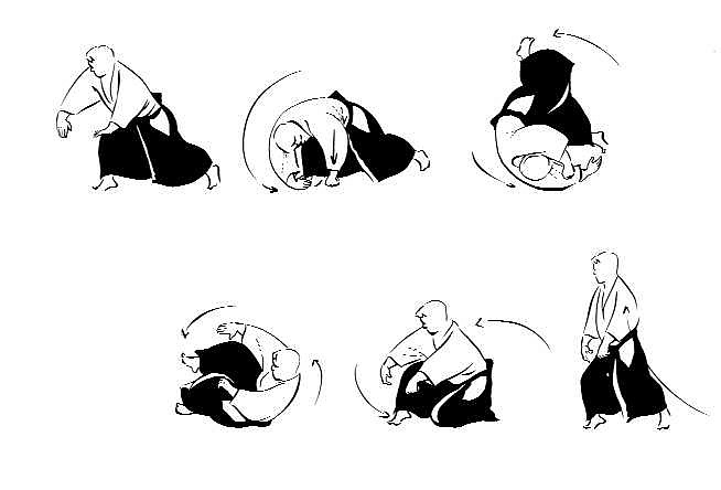 Mnohé z techník aikido končia tým, že sa súper ocitne na zemi. Môže sa na ňu dostať buď